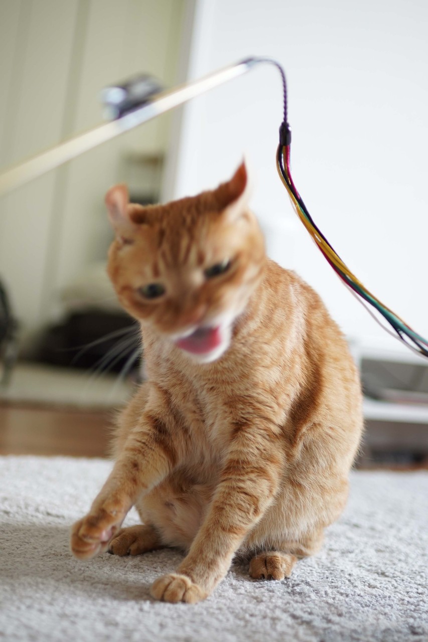 「うちの猫が遊んでる写真」を撮ってみる。 2019年08月27日 本日2回目の投稿。1回目はこれぞ!「猫フォトスクール」に行ってきたので習ったことを踏まえて 8にゃんを可愛く撮ろうと思い近くにいた“いっくん”の前に「じゃらし」を“じゃらじゃら”してみたがどうしてかびっくりするほど無反応( ̄▽ ̄)しかも座ってくつろぎ始めたので目の前でじゃらじゃらしてみたけど無反応( ̄▽ ̄)むしろかわしてる。「猫フォトレッスン」の猫さんたちはめちゃくちゃじゃれててかわいい写真がいっぱい撮れたのにおじさん一切じゃれない。さてはいい写真撮らせない気だな?昨日習ったことを忘れる前に発揮できる日が来るのか否か。これで遊んでる時の写真 いっくんがじ乗っけてるのは、これ。レザー バウンサー 大きめの猫じゃらし ねこじゃらし猫に優しいインテリアブログはこちらゆるゆる絵日記ブログも更新中♪猫と楽しく暮らせるおうちプロデュース タグ :#いっくん#猫じゃらし