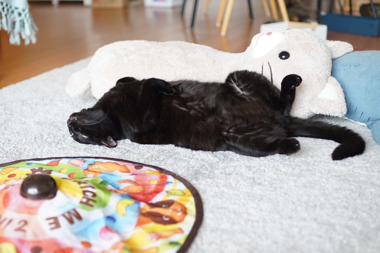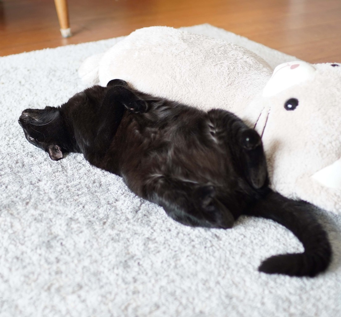 わが家で“一番警戒心の強いねこ”の、寝姿。 2019年08月28日 8猫中『警戒心が一番強い』もす。けど、なぜか『寝姿が一番大胆』なのだ。真逆( ̄▽ ̄)どれくらい大胆かというとリビングの真ん中でこのカッコそして、この顔。この顔。爆睡中。からの、開き。わがままボディ全開。もう熊でしかない( ̄▽ ̄)がお〜世界最小の、熊。↑この写真の記事は↓これ。 猫に優しいインテリアブログはこちらゆるゆる絵日記ブログも更新中♪猫と楽しく暮らせるおうちプロデュース タグ :#世界最小の熊#もす#警戒心の強い猫#大胆な猫#熊ねこ#ミニチュアくま